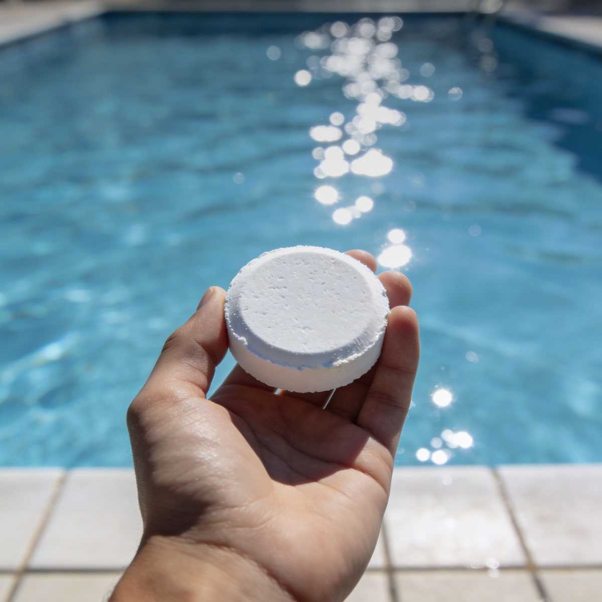 Il se diffuse progressivement (en galets ou en pastilles) pour maintenir un taux de chlore stable dans l’eau, sans variation brutale.