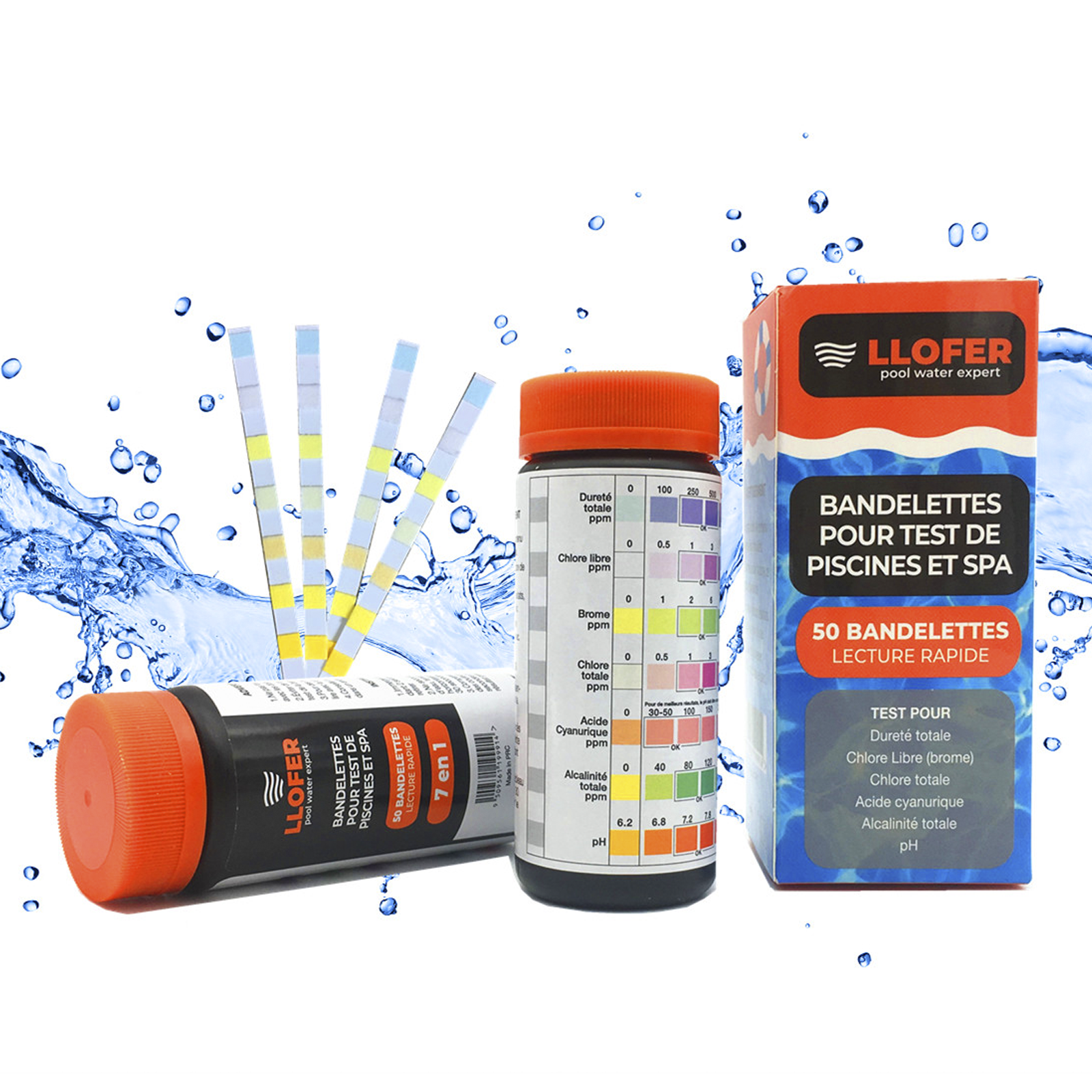 Les bandelettes test piscine 7 en 1 LLOFER permettent de contrôler d’un seul geste les principaux paramètres de votre eau. Rapides, fiables, pratiques : l’outil essentiel pour une piscine toujours saine.